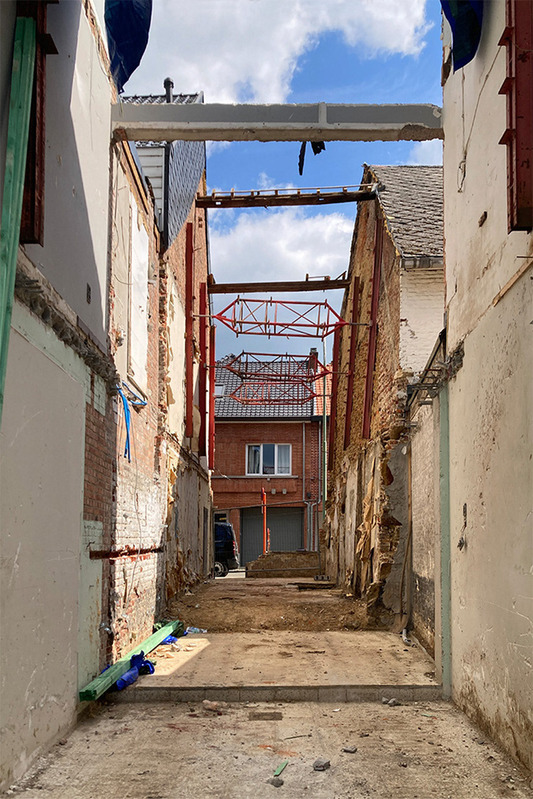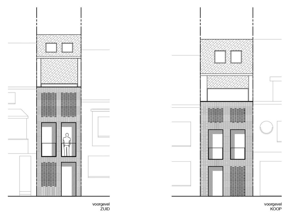 Op een perceel van slechts 70 m² worden twee compacte, autonome woningen ingericht. Met gevelbreedtes van minder dan 4 meter en elk met een eigen toegang aan de straat sluiten de volumes aan bij de schaal van de omgeving. De woningen zijn opgevat rond licht en privacy. Aan de straatzijde vormt een open bakstenen gevel een filter tussen woning en publieke ruimte, met daarachter een glazen gevel die het daglicht diep naar binnen brengt. De leefruimtes richten zich naar het licht en de buitenruimte. Meer gesloten functies worden compacter georganiseerd aan de achterzijde. Met een beperkte oppervlakte ontstaat zo een heldere woonkwaliteit.